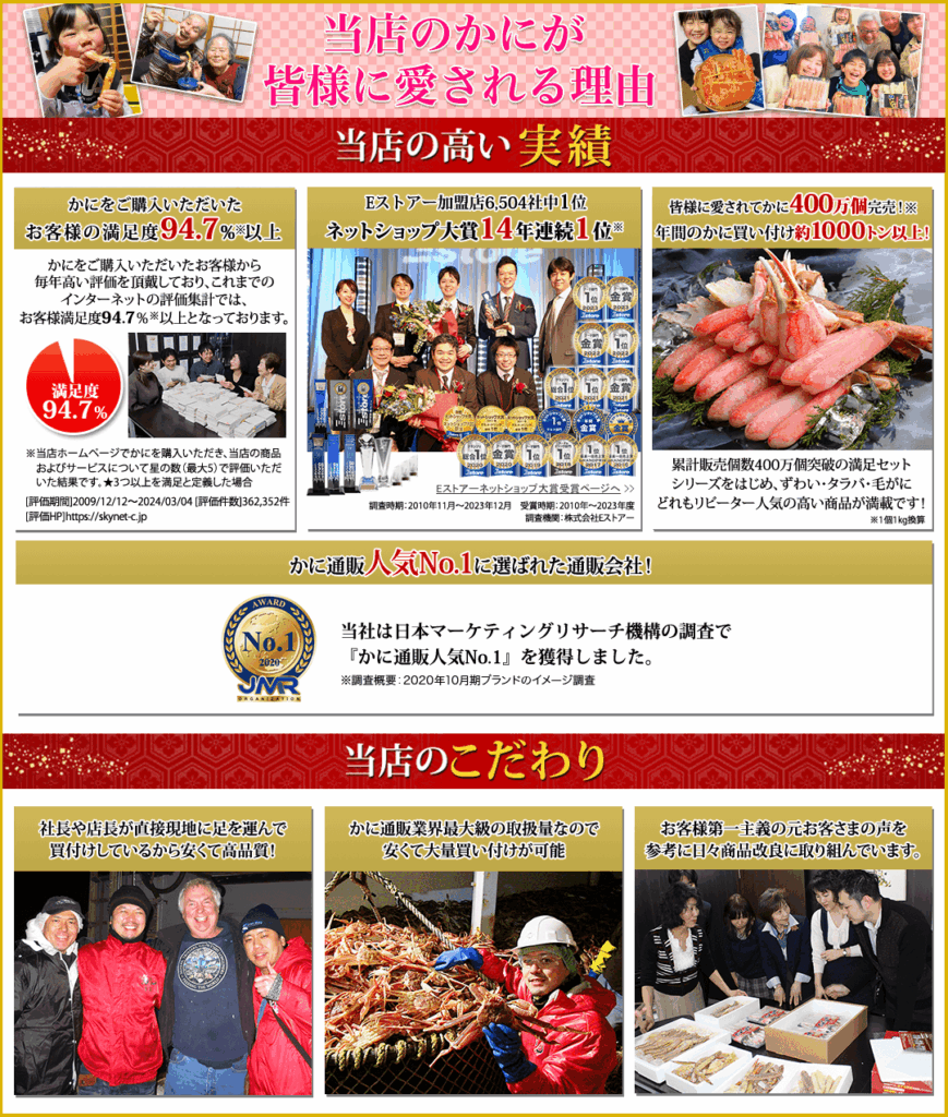 匠本舗のカニ通販は、毎年リピーターが絶えない人気ショップ。